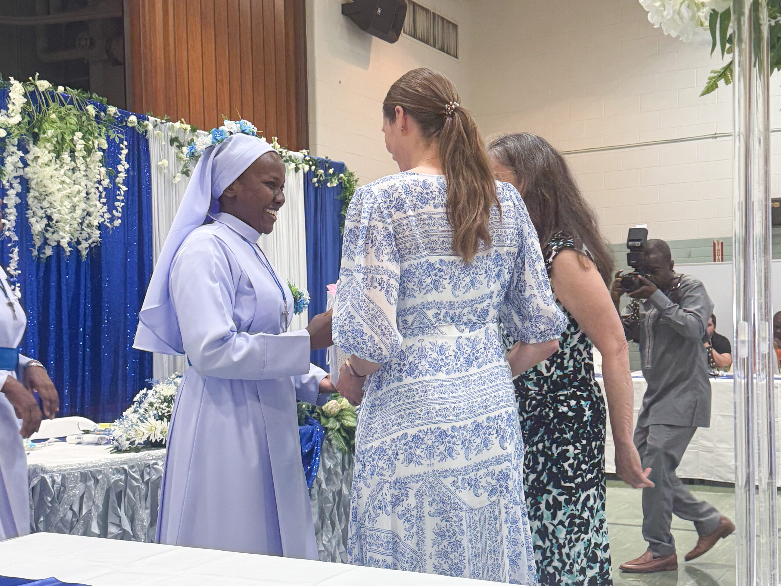 While she would normally travel to Tanzania to celebrate with her congregation, the Sisters of Our Lady of Kilimanjaro, Sister Mary took her vows in Columbus instead. Local sisters and priests, including Bishop Fernandes, joined the celebration to support her on this special day.